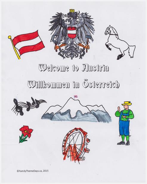 INTRODUCTORY DISCUSSION: Austria is officially known as the Republic of Austria and is a country situated in Central Europe. Eight countries border it: Czech Republic, Germany, Hungary, Slovakia, Slovenia, Italy, Switzerland and Liechtenstein. Take out a globe or atlas before you have this Theme Day or go online to show your child where Austria is and compare it to where you live. For more information about Austria check here: http://en.wikipedia.org/wiki/Austria