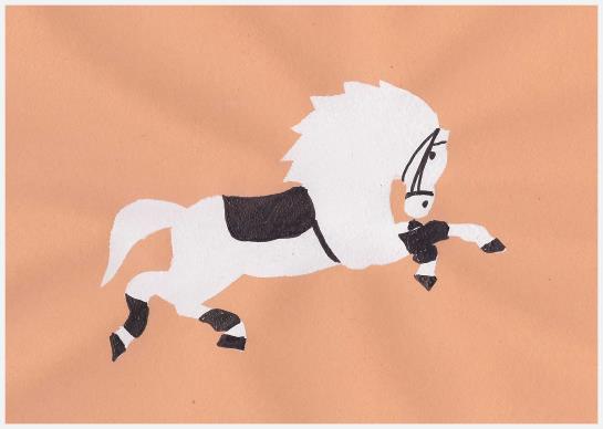 Material: A Copy of my Horse Template Printable, white paint, coloured paper, kitchen sponge or craft sponge, newspaper to colour your work space, wax paper for a pallet, art smock or old clothes., cutting board and craft knife/x-acto knife (parent use only)., black sharpie marker.
