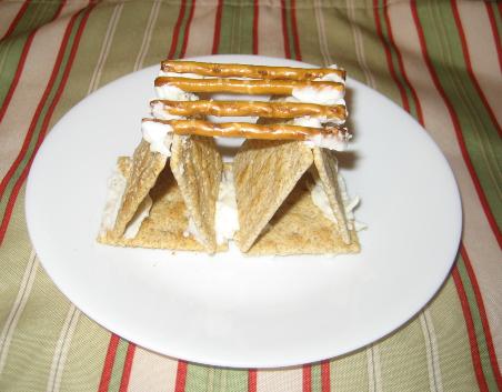 FOOD: SNACK: Cracker Construction: Give your child the ingredients (cream cheese, crackers and pretzels) and see what he/she can build using them.