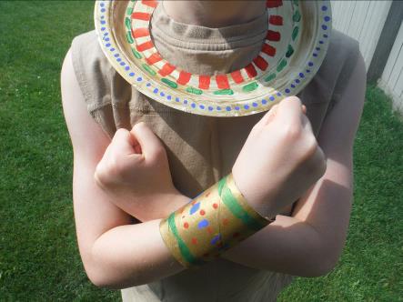 Paper Plate Egyptian Collar and Paper Roll Cuff |
