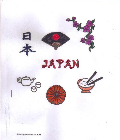 INTRODUCTORY DISCUSSION: The Japanese name for Japan is Nippon and Nihon. Both of these words literally mean “the sun’s origin” and are often translated as “Land of the Rising Sun.” Take out a globe or atlas before you have this Theme Day or go online to show your child where Japan is and compare it to where you live.