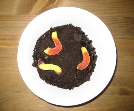 Ingredients: Chocolate pudding, crushed Oreo cookie crumbs or chocolate wafer crumbs (optional), gummy worms (or pieces of gummy circles if you cannot find the worms as I couldn’t). Step 1: Make pudding according to package instructions (or buy pre-made to be quicker) and put some pudding in a dish per family member. Step 2 (Optional): Add crushed chocolate cookie crumbs over the pudding. Step 3: Arrange gummy words squirming out of the pudding mud.