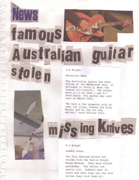 Step 1: Cut out random pictures from a newspaper (you can save the article if you wish) and letters. Step 2: Let your child choose which picture he/she wants to use and have your child make up a mystery behind the picture. Step 3: Help your child come up with a title for the news article and search together for the letters to spell the title. Step 4: Help your younger child (or let your older child do this on his/her own) to write out the news story on the computer. Remember to answer who, what, when, where, why and how! Step 5: Print out the story. Step 6: Have your child glue the story title, the photo and the news article to the page.