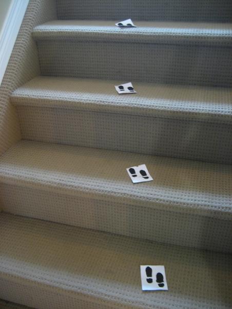 NOTE: We made two sets of stencils. Small footprints to decorate the journal entries and larger ones for the game found below under “FOR FUN.”